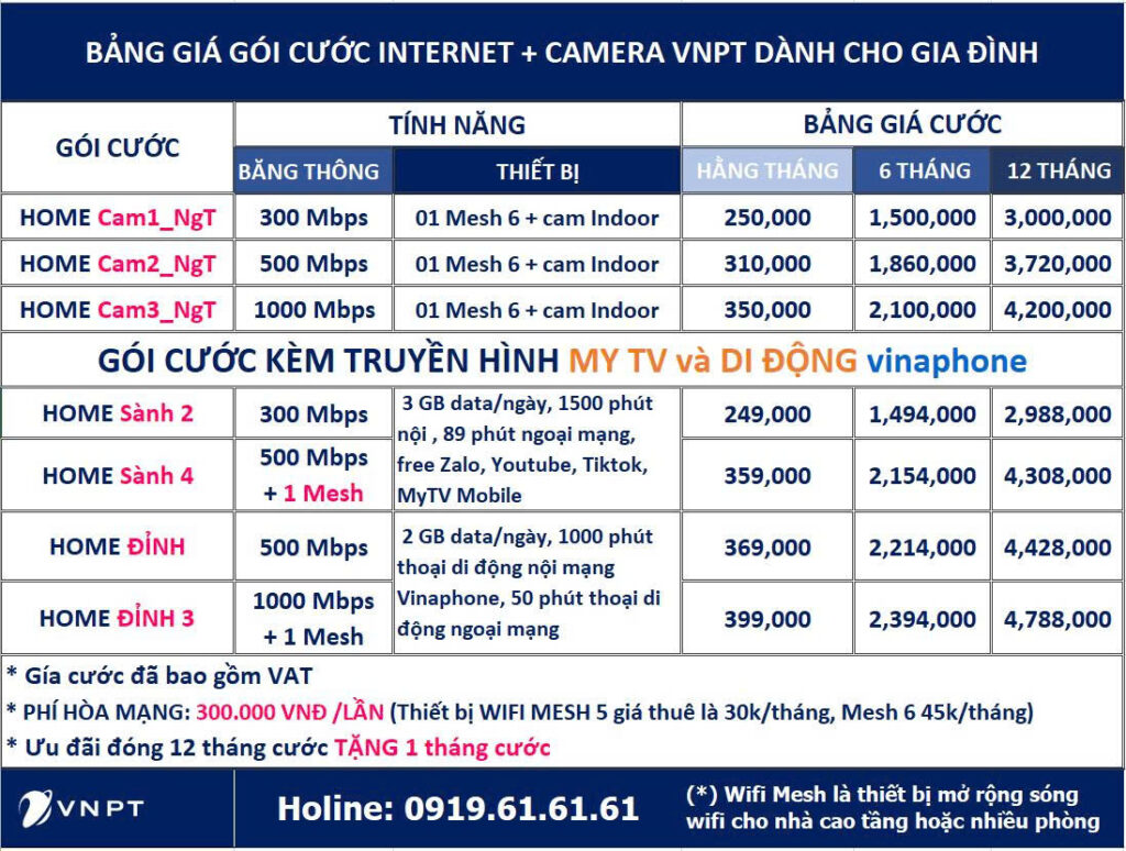 GÓI CƯỚC INTERNET VNPT CHO GIA ĐÌNH