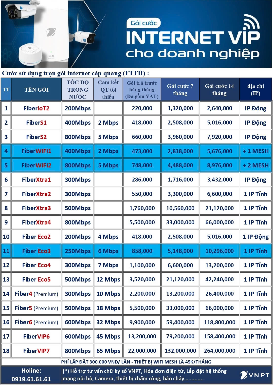 Gói cước internet cáp quang ( FTTH ) Dành cho Doanh nghiệp